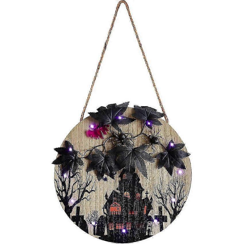 Halloween Porch Sign with LED Lights and Spider Wreath