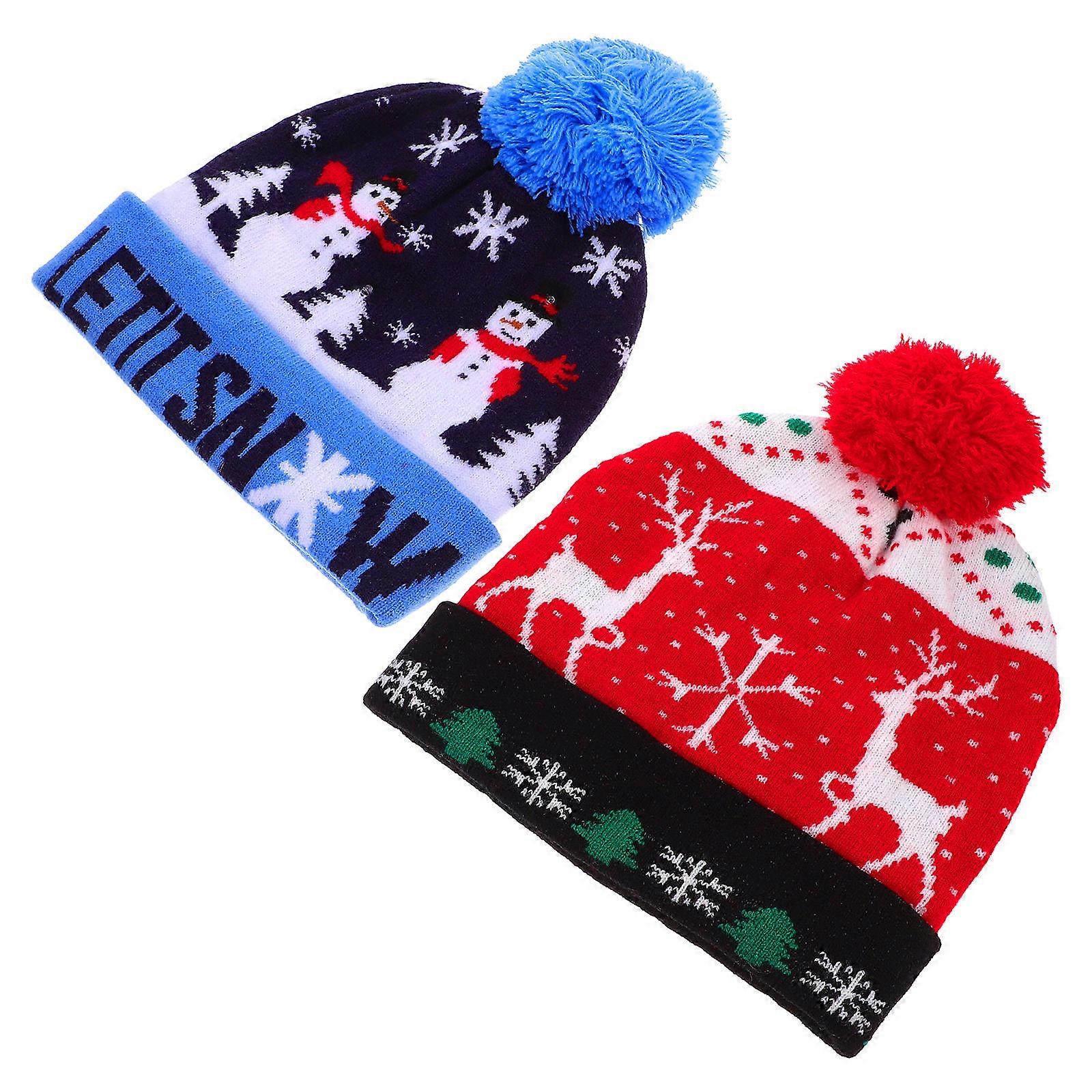 LED Light Up Christmas Hat Knitted Beanie 2Pcs for Adult Winter Wear