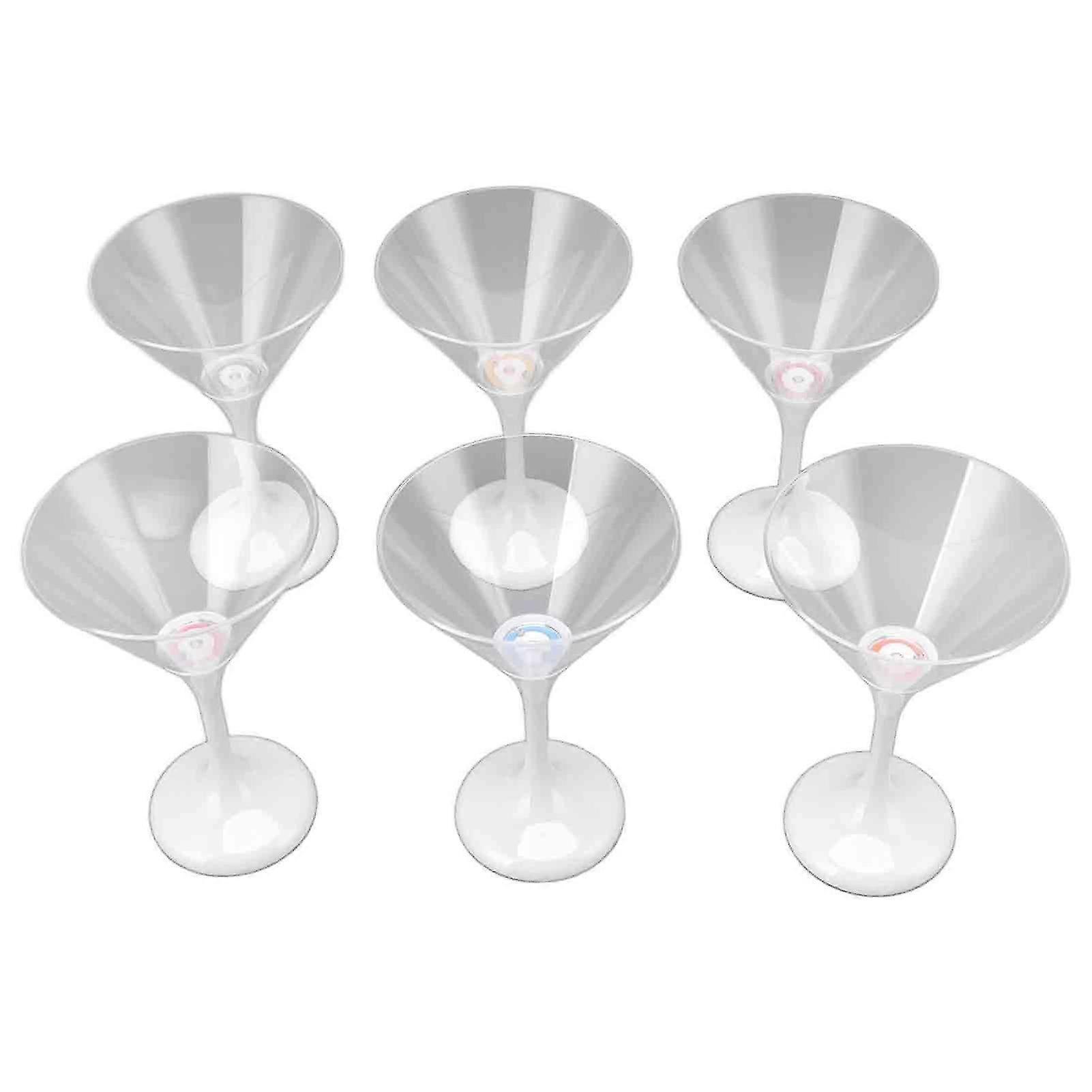 LED Light Up Flashing Plastic Martini Glasses 6 Pack 210ml - Party Prop Glow Cup with Stem