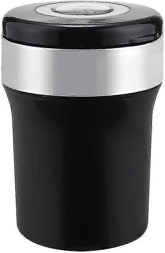 Portable Ashtray With Led Light Compass And Cover, Black / Silver, For Car FT