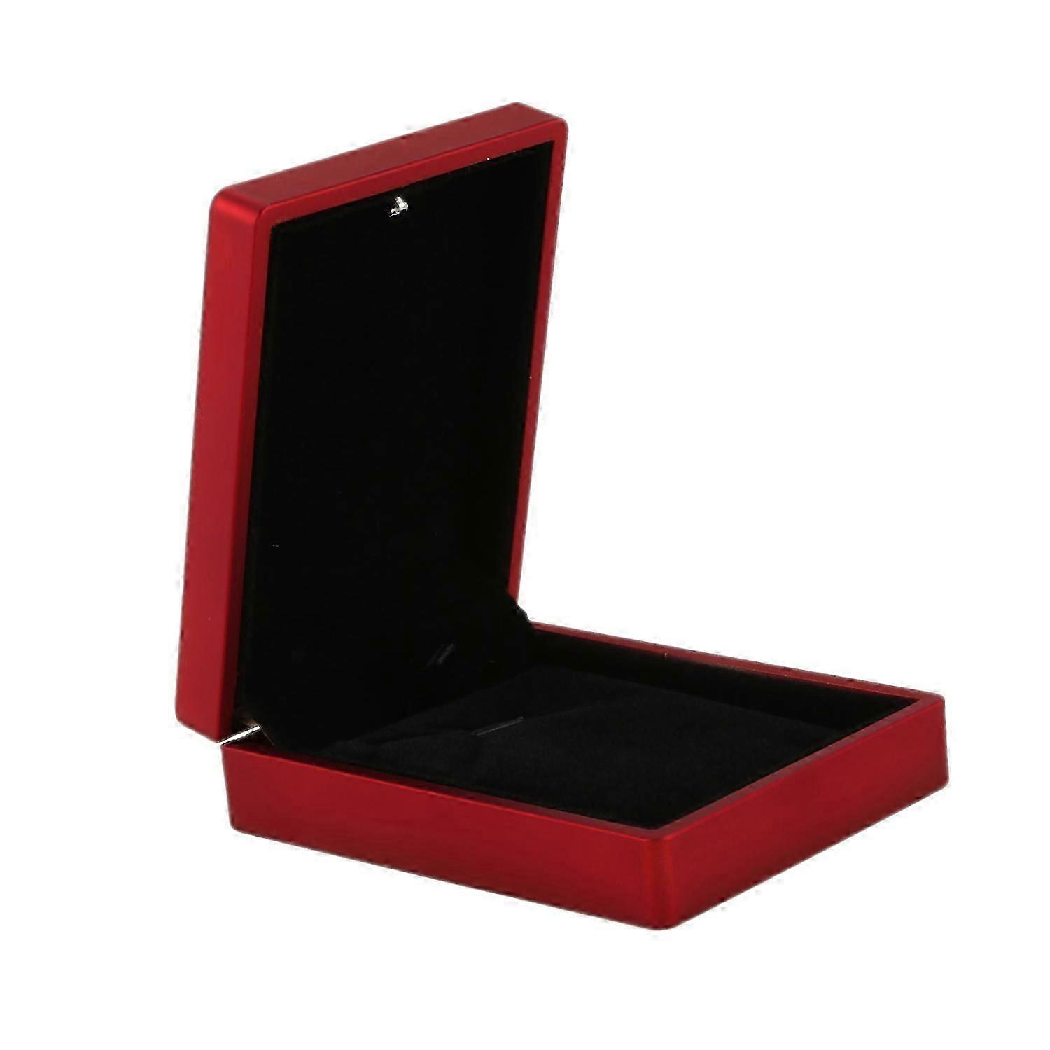 Led Lighted Necklace Box Rubber + Plush Pendant Case For Jewelry Display Wedding Valentine's Day Gift (red)