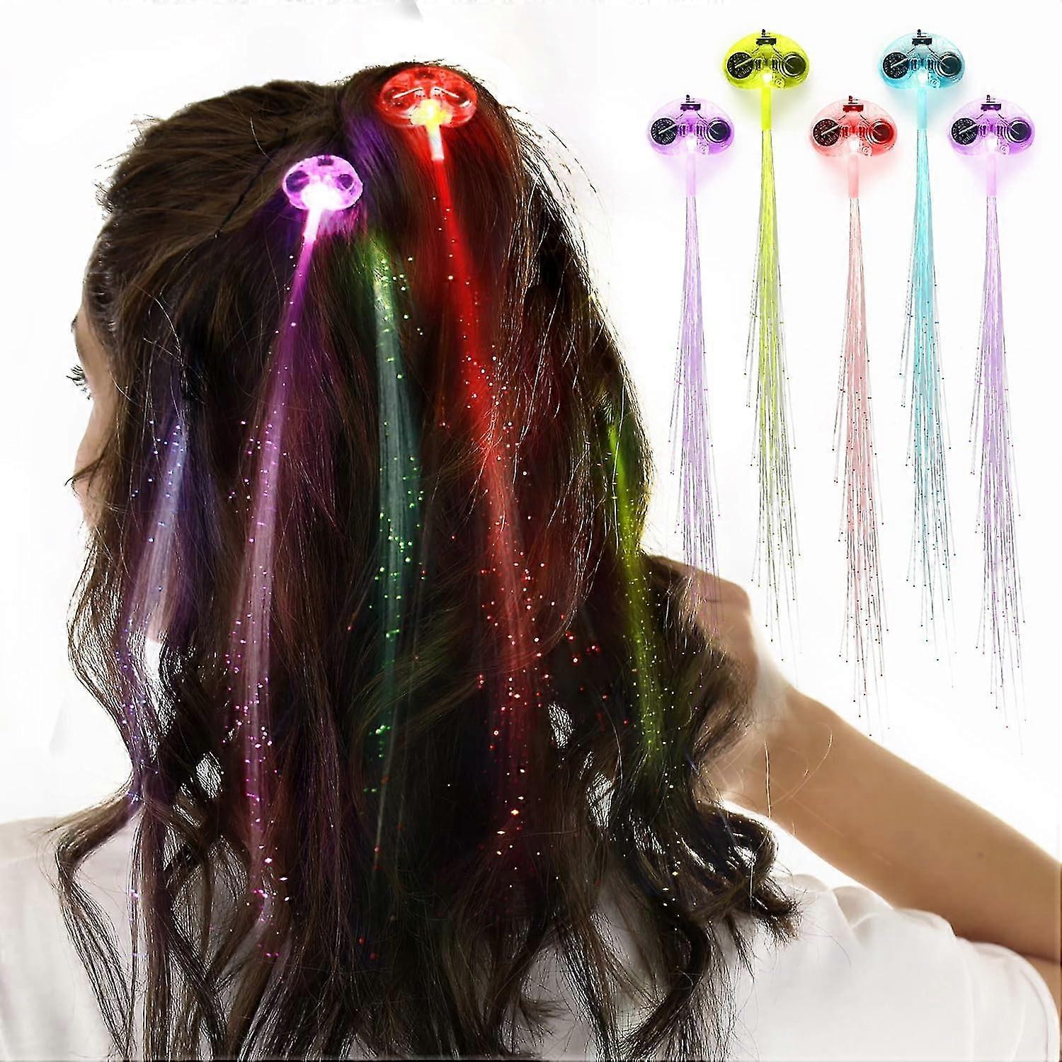 Eye-Catching - The LED light up hair, very eye-catching in the dark. Wear it and be the center of the party! Convenient - Switch the hair light on and clip it anywhere you want! The small battery box is easy to hide. Just clip it on and have fun! Long Lasting - Powered by high capacity batteries, each hair strand light lasts up to 24 hours. The fun is endless! Specifications - Each LED fiber optic hair is 14 inch with a mini battery case. 10 LED hair clips per pack. Great for any nighttime party! Eye-Catching:The LED light up hair constantly shift between 7 different colors, very eye-catching in the dark. Wear it and be the center of the party! Convenient:Switch the hair light on and clip it anywhere you want! The small battery box is easy to hide. Just clip it on and have fun! Long Lasting:Powered by high capacity batteries, each hair strand light lasts up to 24 hours. The fun is endless! Specifications:Each LED fiber optic hair is 14 inch with a mini battery case. 10 LED hair clips per pack. Great for any nighttime party!