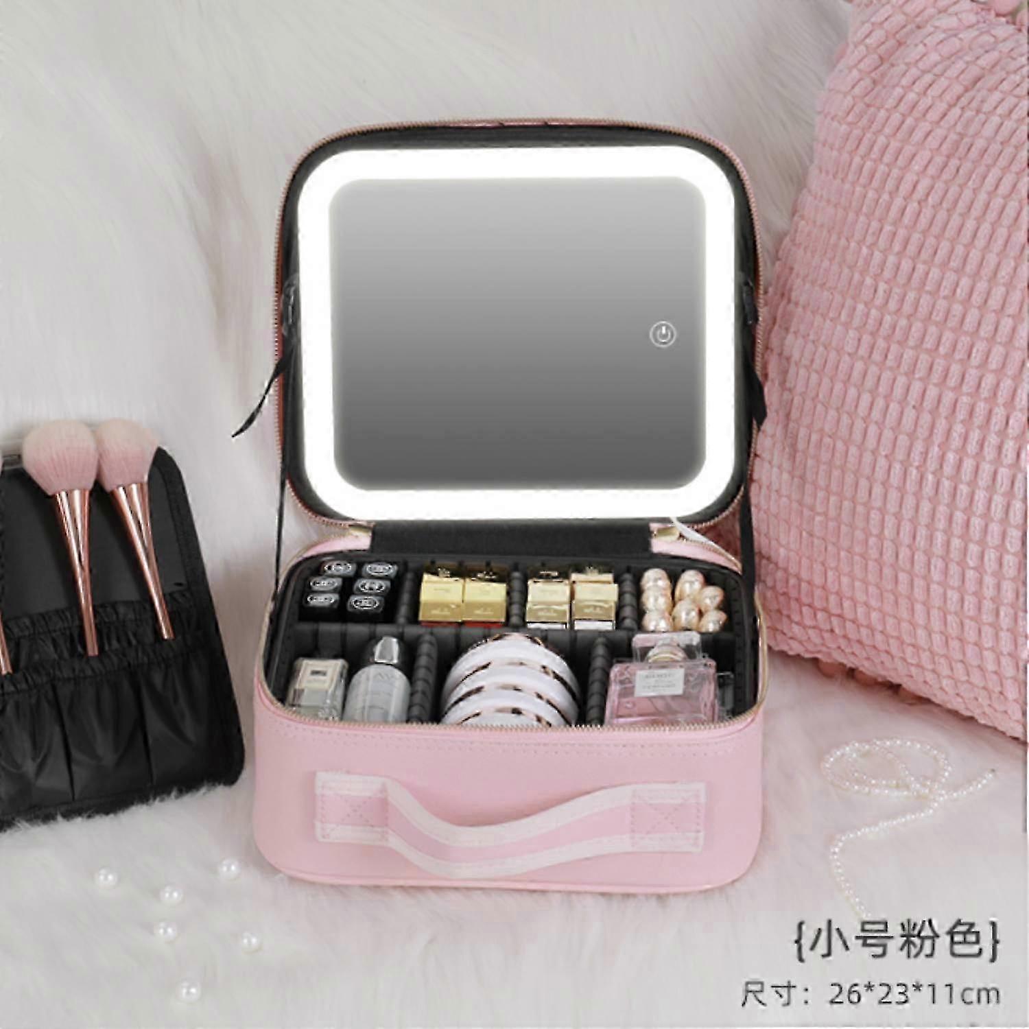 Travel Makeup Case with LED Light Mirror Portable Cosmetic Pouch Travel Organizer Size S (Pink)