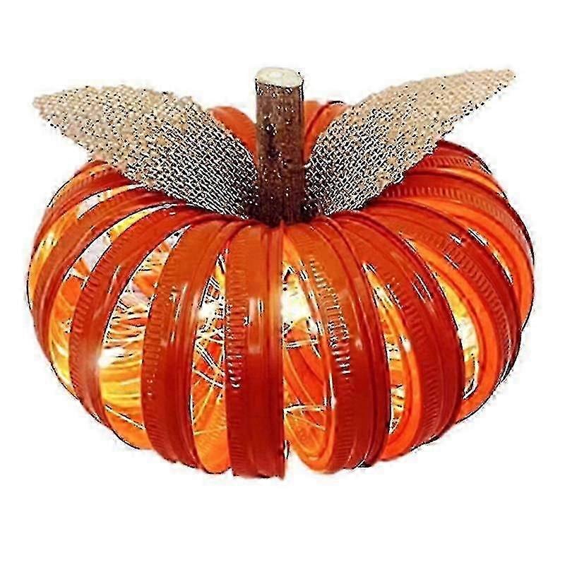 - Light up the pumpkin Each contains a row of battery operated string lights on the inside. There are 30 lights on each row. - Made from Orange Mason Jar Lid Approximately 1015cm. - Place it on your mantel, counter, tray, - 0- - -dining table or shelf as you prepare for the season. Make your home more festive for those Halloween parties. It's also a wonderful touch as a Thanksgiving centerpiece.Material: glass, metalPackage List: 1 Piece Decorative Gourd Light