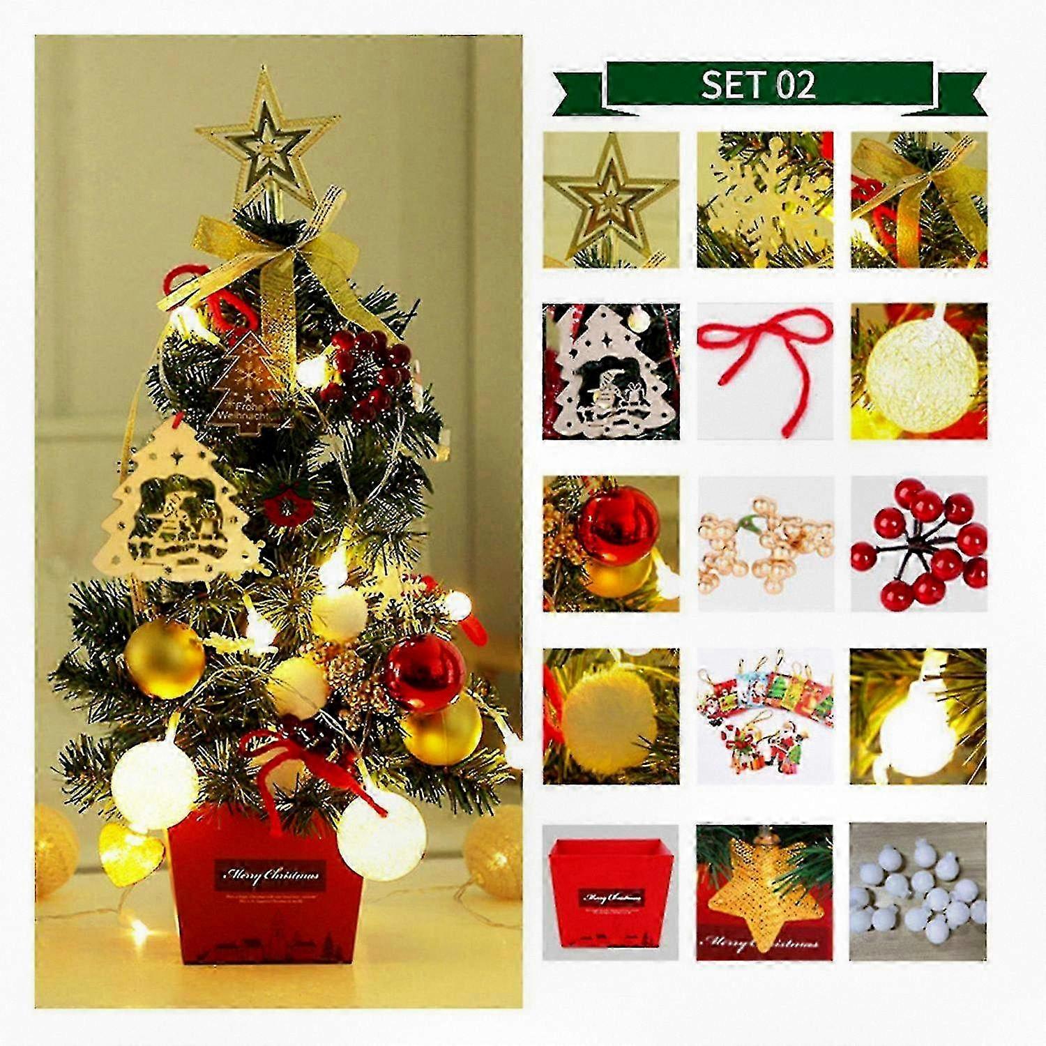 Small Festive Tabletop Tree with LED Lights 50cm Golden Red Holiday Decor