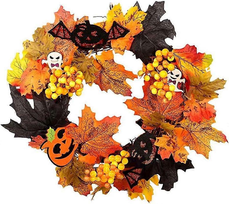 35cm Faux Fall Garland with LED Lights, Maple Berry Hanging Garland Rattan for Wall Front Door Halloween Thanksgiving Party Decoration1pcs