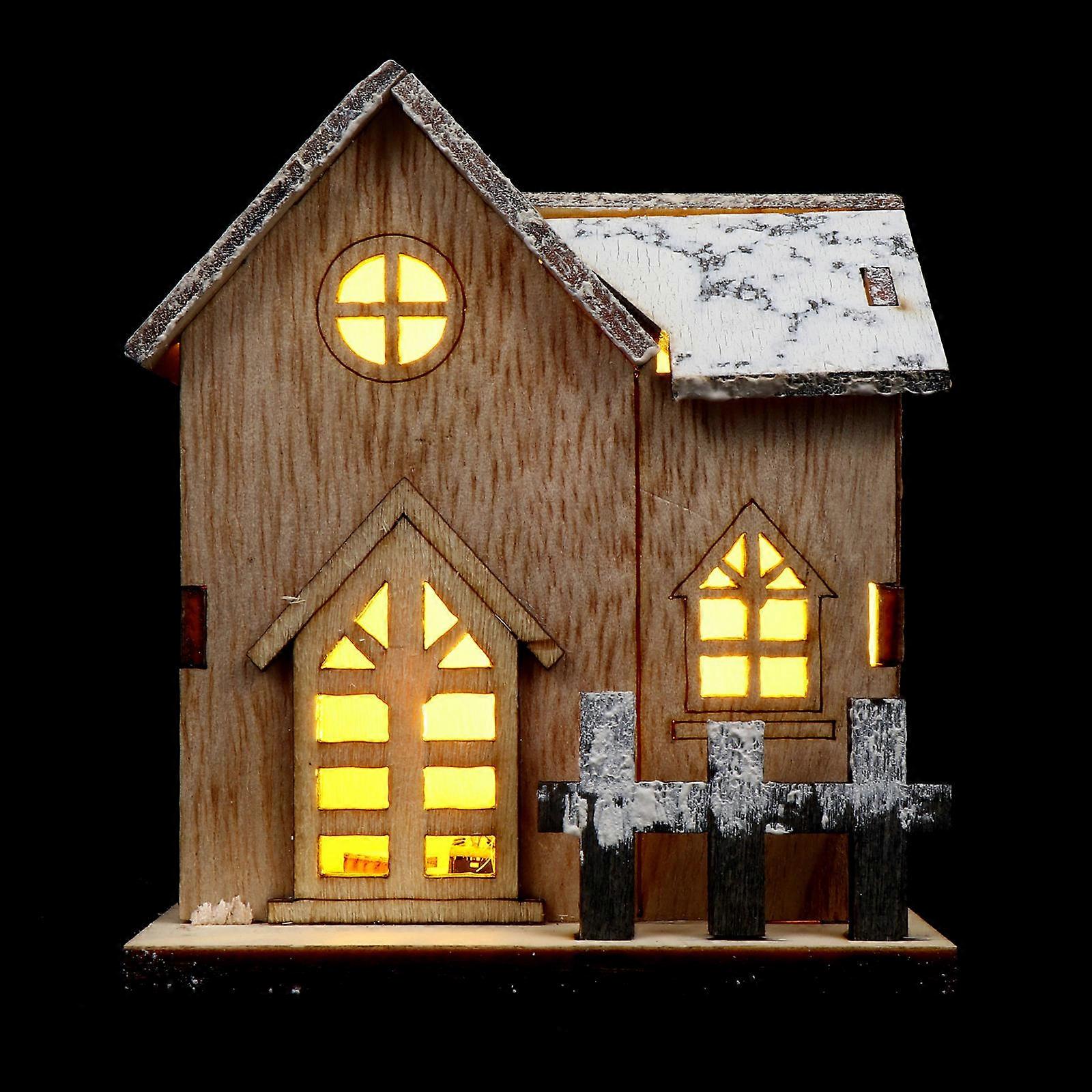 LED Luminous Small Wooden House Xmas Ornament for Decor 1Pcs Xmas Tabletop Adornment