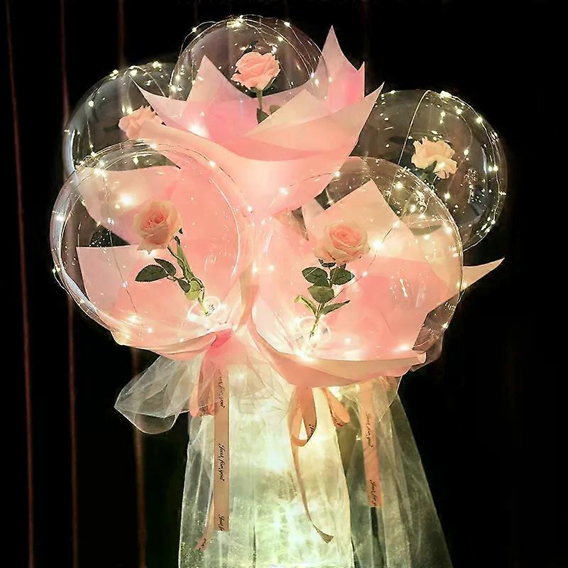 LED Luminous Balloon Rose Bouquet Light Transparent Balloons Flower for Wedding Party Valentines Day Decor Birthday Thanksgiving