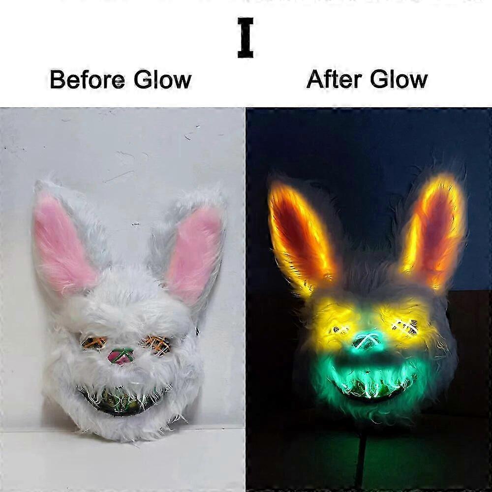 LED Glowing Bunny Face Mask Scary Bloody Killer Mask Neon Horror Rabbit Mask Halloween Masquerade Dance Party Props