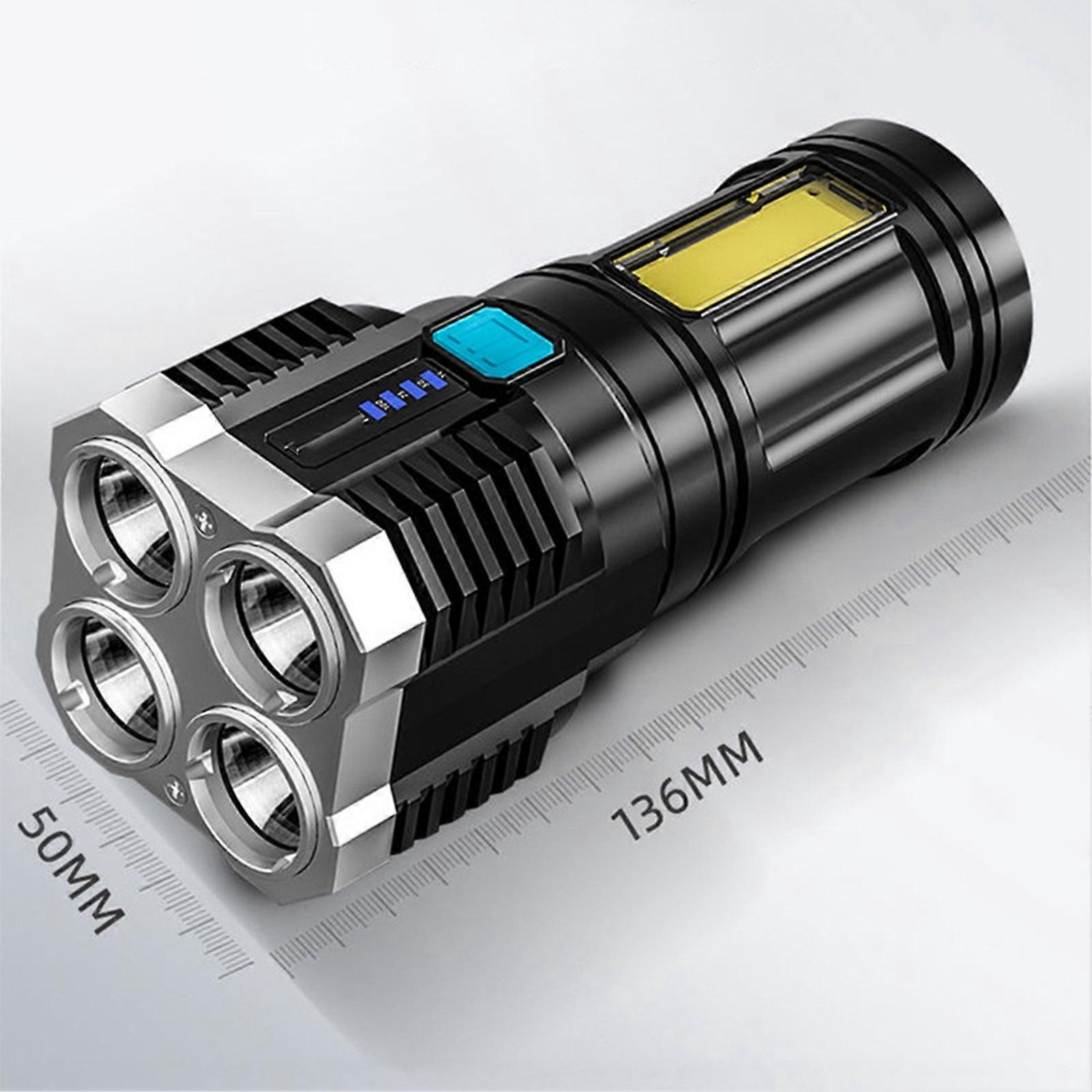 LED Outdoor Flashlight Portable USB Rechargeable Super Bright Torch Quad Core for Fishing Hiking Emergencies 1PC