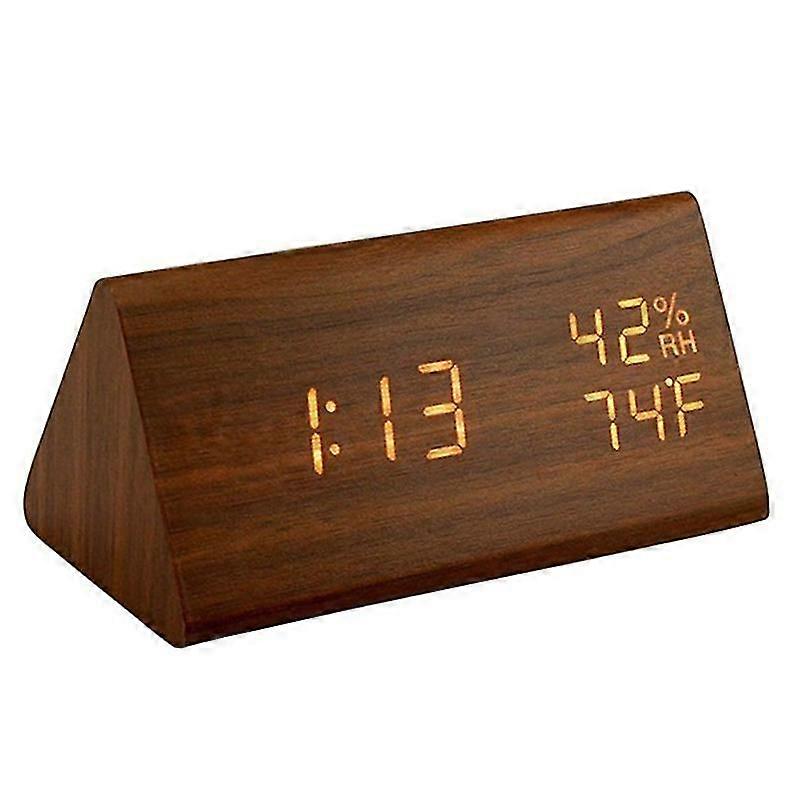 LED Wooden Digital Alarm Clock Table Clock Date Temperature Humidity Display 12/24 Hours, Digital Wooden Clock, Multifunctional Alarm Clock-Q33