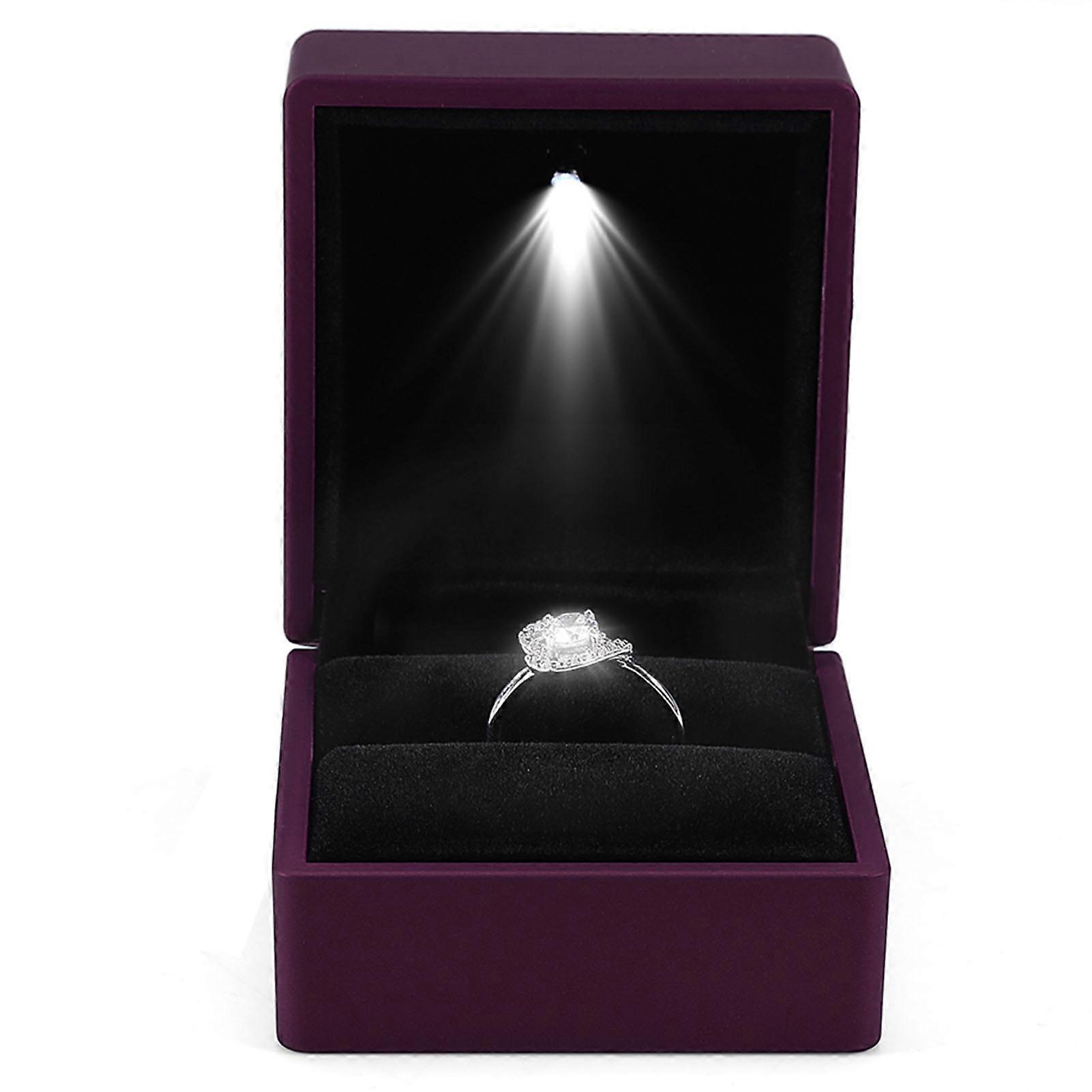 LED Lighted Ring Box 6.5x6x5cm Jewelry Case Purple Gift