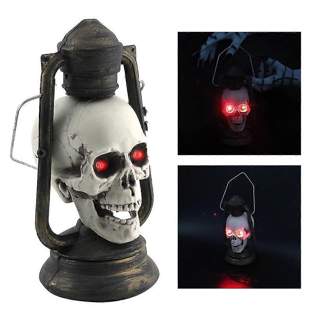 Led Skull Lantern Glowing Eyes Creepy Hanging Lamp Halloween Decor Propswhite1pcs