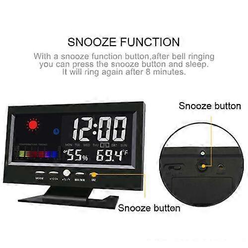 LED Digital Alarm Clock Snooze Calendar Thermometer Weather Station LCD Display
