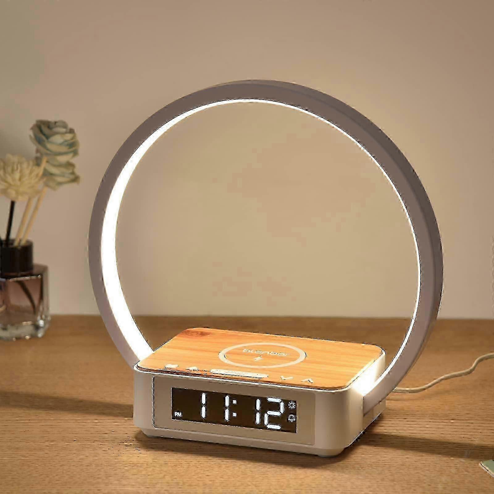 Led Bedside Lamp With Charging Function, Table Lamp Wake Up Light Alarm Clock Touch Control Dimmable, 5w Wireless Charger Table Lamp For Bedroom