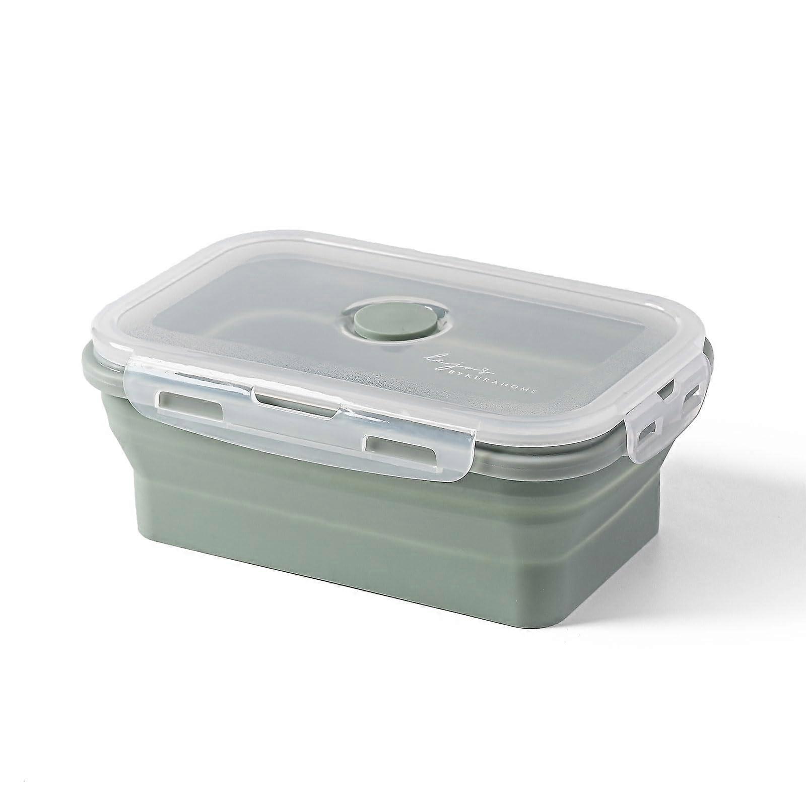 Lejos Silicone Collapsible Lunch Box Sage - LFGB-Grade Travel Food Storage Container Microwave Freezer Safe