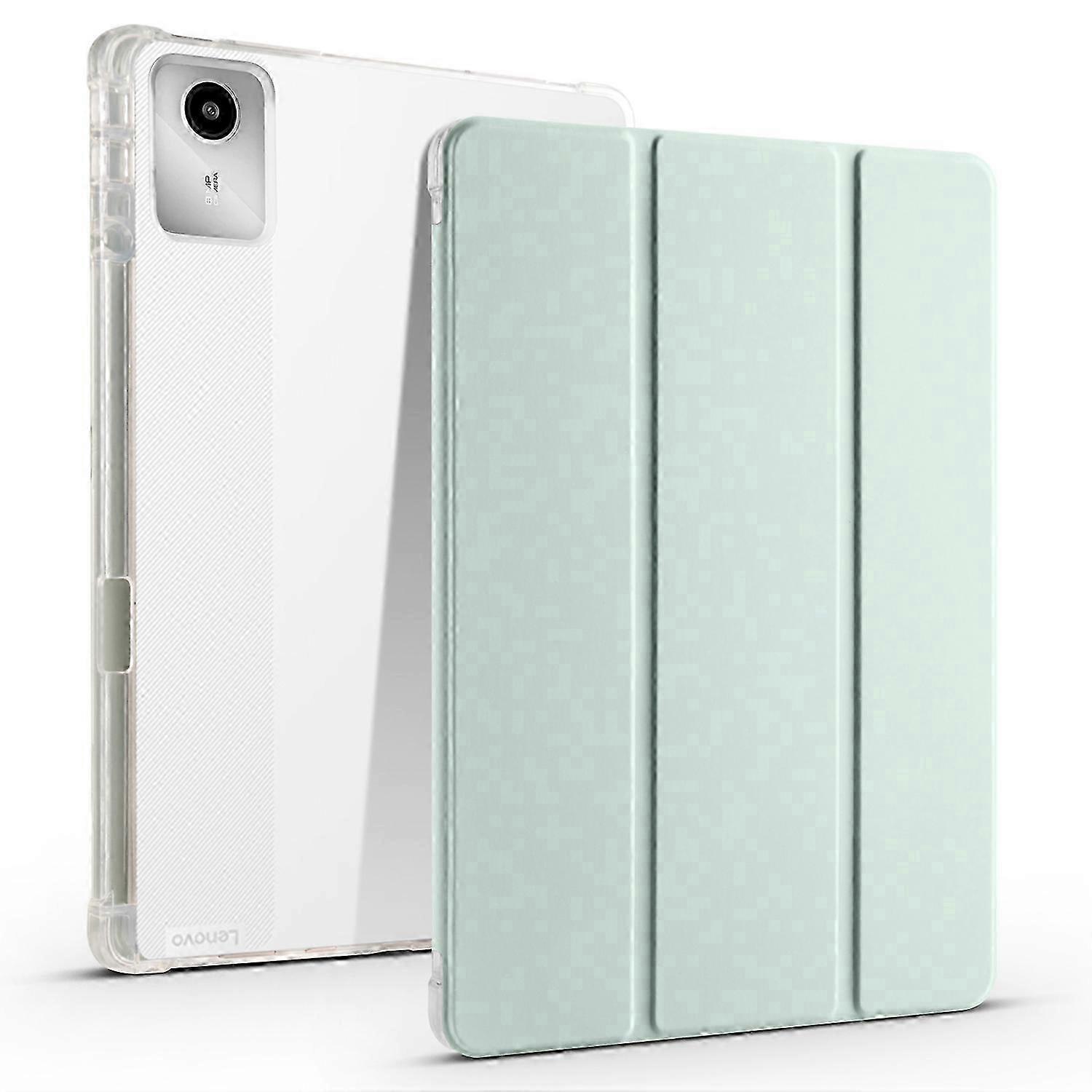 Tri-fold Transparent Back Auto Sleep/wake Case For Lenovo Tab M11 (xiaoxin Pad 11 2024) + Pen Slot Light Green