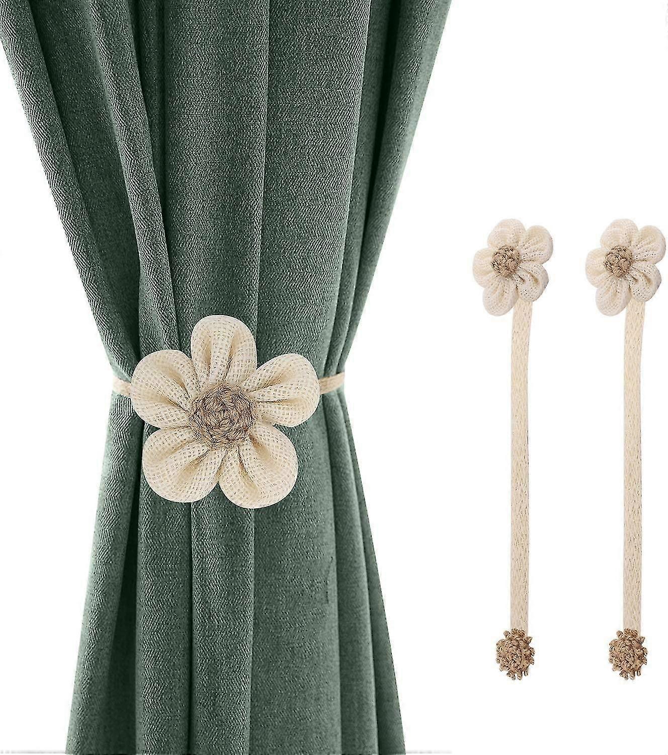Lewondr Magnetic Curtain Tiebacks with Buckles, [2 Pack] Sunflower Decorative Linen Braiding Magneti