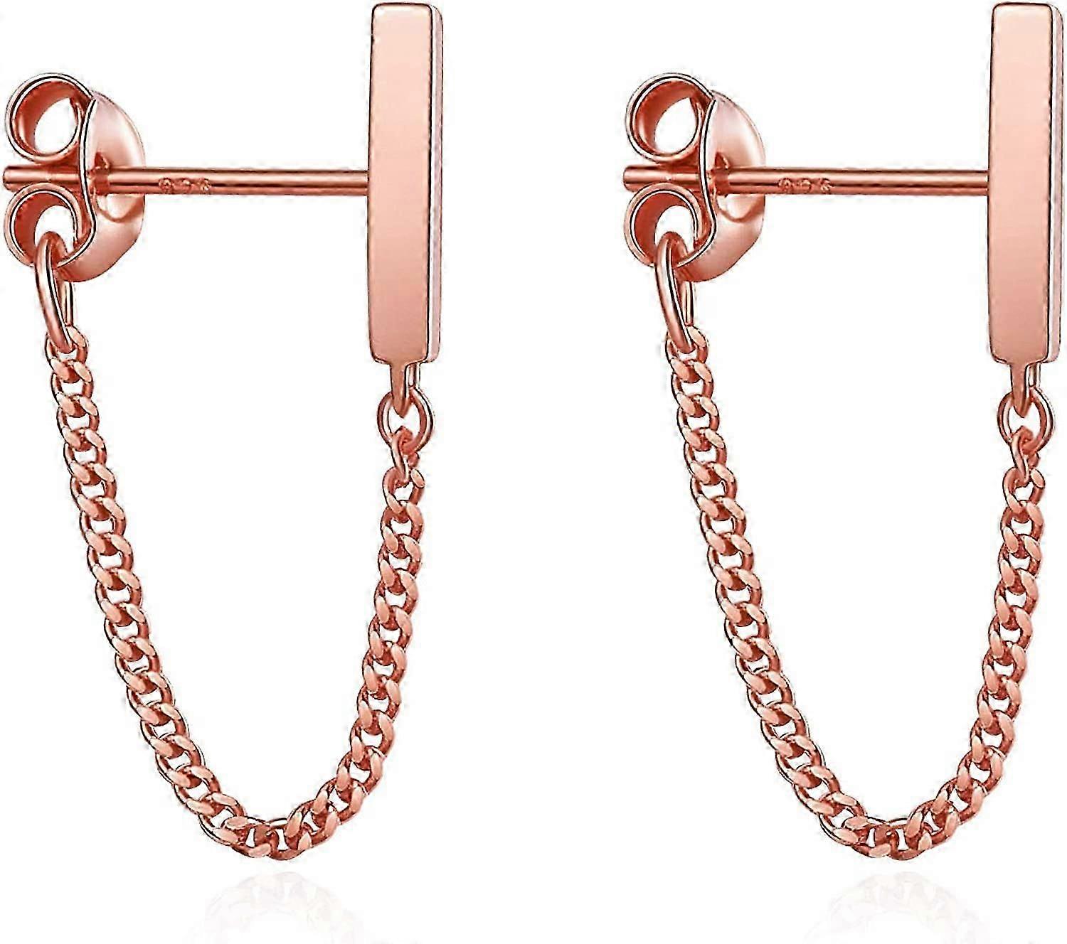 liangnv Chain Earrings Sterling Silver Stud Earrings Bar with Chain Dangle Earrings Gold Earrings for Women rose -