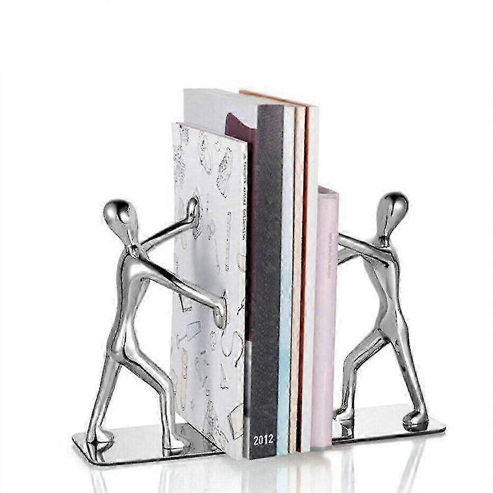 LINJOU Fashion Creative Stainless Small Humanoid Bookend Pair Kung Fu Man Book Organizer