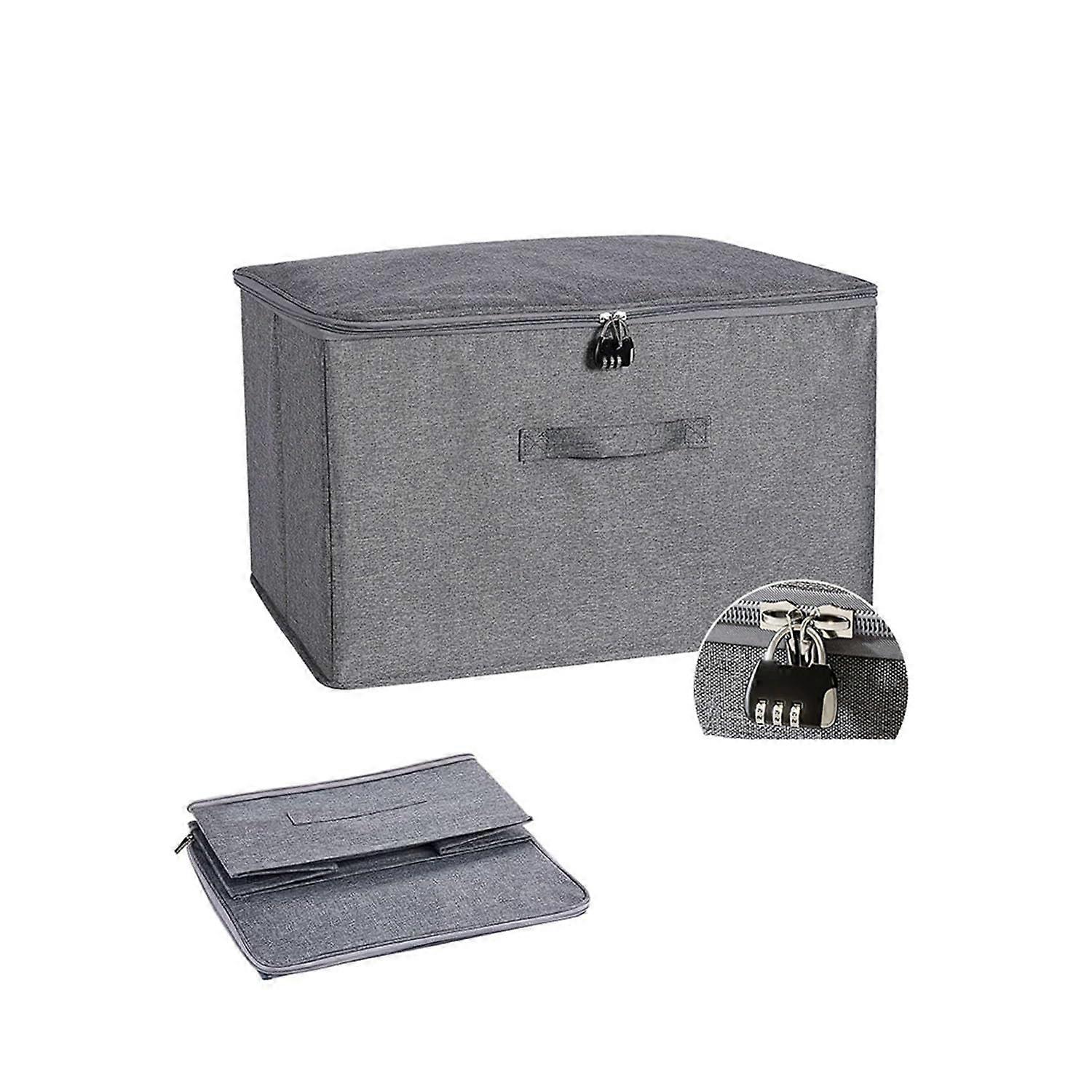 Lockable Storage Box Fabric Collapsible Box With Lids Combination Lock Grey 30cm x 20cm x 14cm Stackable Wardrobe Cube