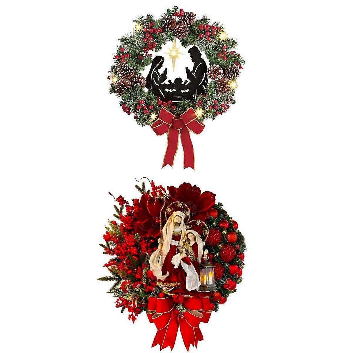 Loviver 2pcs Christmas Wreaths Bowknot Garland Floral Exquisite Wall