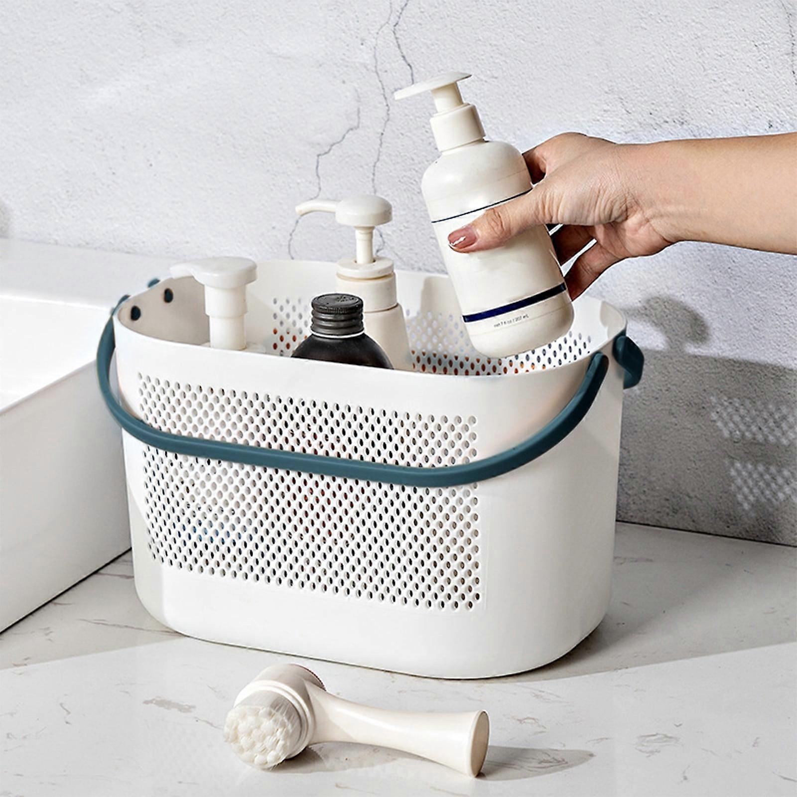 Luckky Bathroom Storage Basket, Portable Folding Plastic Bath Caddy with Handle, Perforated, Compatible with Shower, Dorm, RV (Blue)