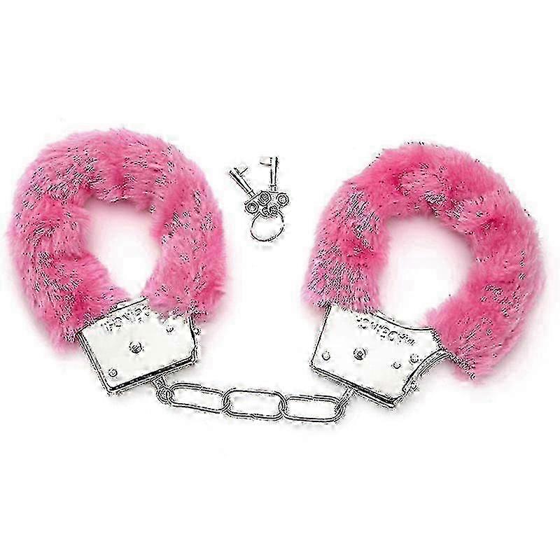 (LWDd)Fluffy handcuffs pink, soft plush with 2 keys for police role play