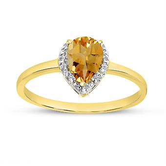 LXR 14k イエローゴールドペアシトリンとダイヤモンドリング 0.52 ct