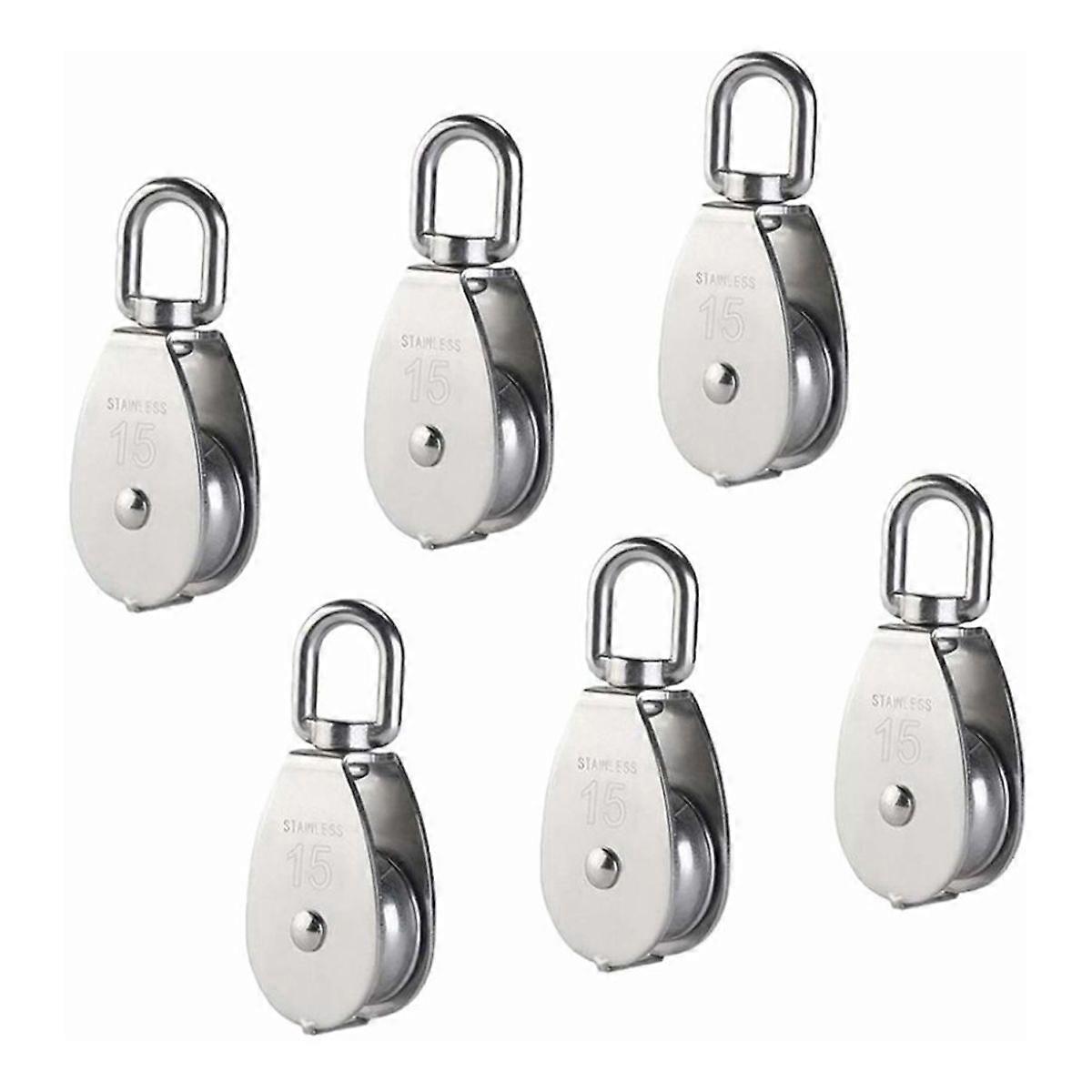 M15 Stainless Steel Single Pulley, 15MM Single Pulley Roller Block, Crane Swivel Hook, Wire Rope, Load 77 lbs / 35 kg (6 pcs)