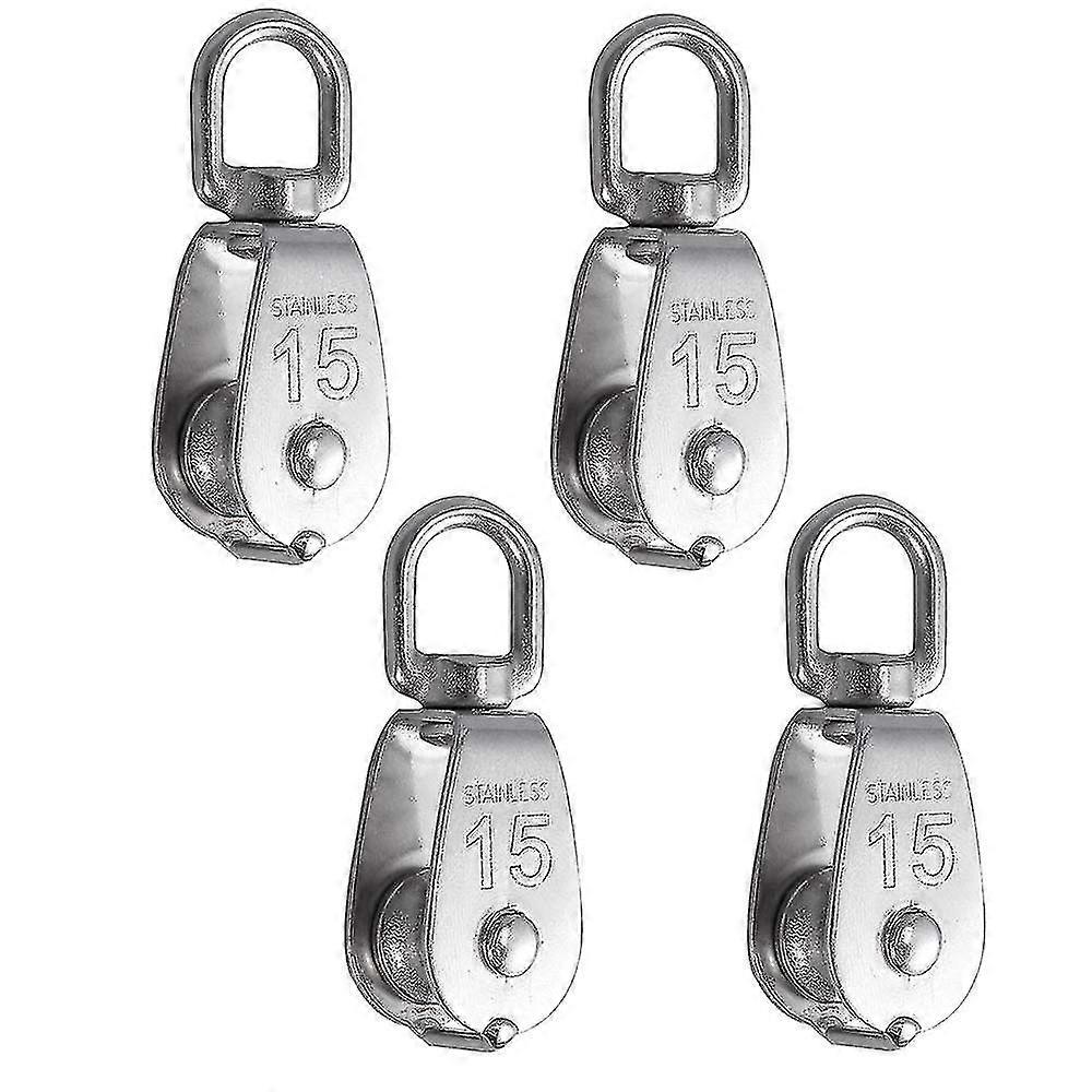 M15 Single Silver Pulley Group 304 Stainless Steel Single Wheel Wire Rope Traction Trolley Crane Rotary Hook Lifting Pulley