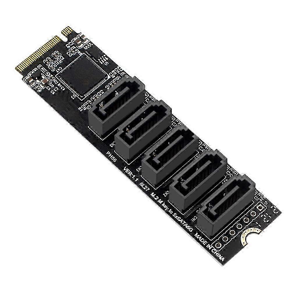 M.2 NGFF PCIE B-Key SATA to SATA 3.0 5 Port Expansion Card 6Gbps Adapter Card with JMB585 Chipset for M.2 NVME to SATA3.0 Compatibility