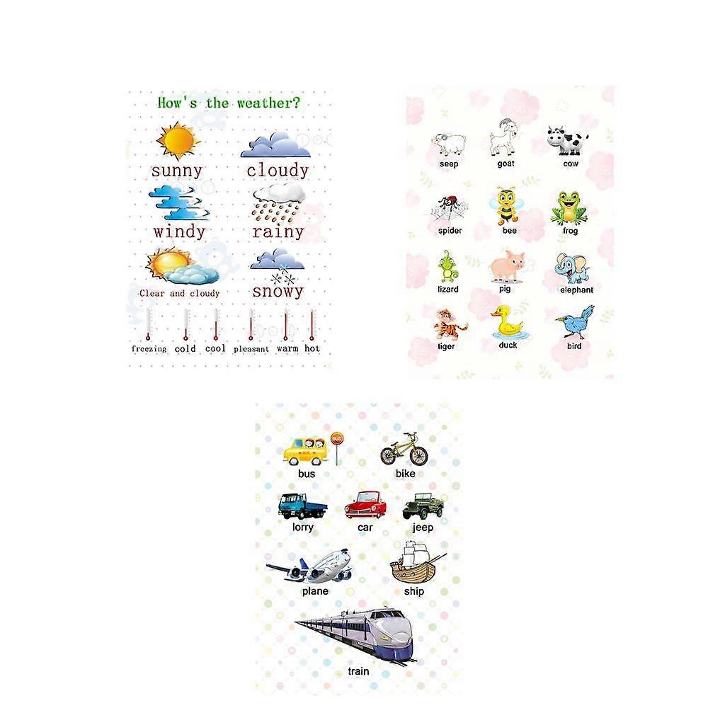 MagiDeal 3 Pieces Preschool Children Early Learning Poster Diagram