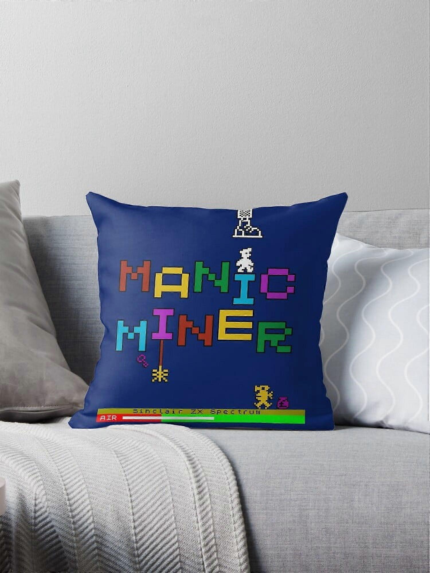 Manic Miner Logo - Willy and Enemies | Sinclair ZX Spectrum - 80s 8-bit Retro Game - Miner Willy Decorative Pillow Covers