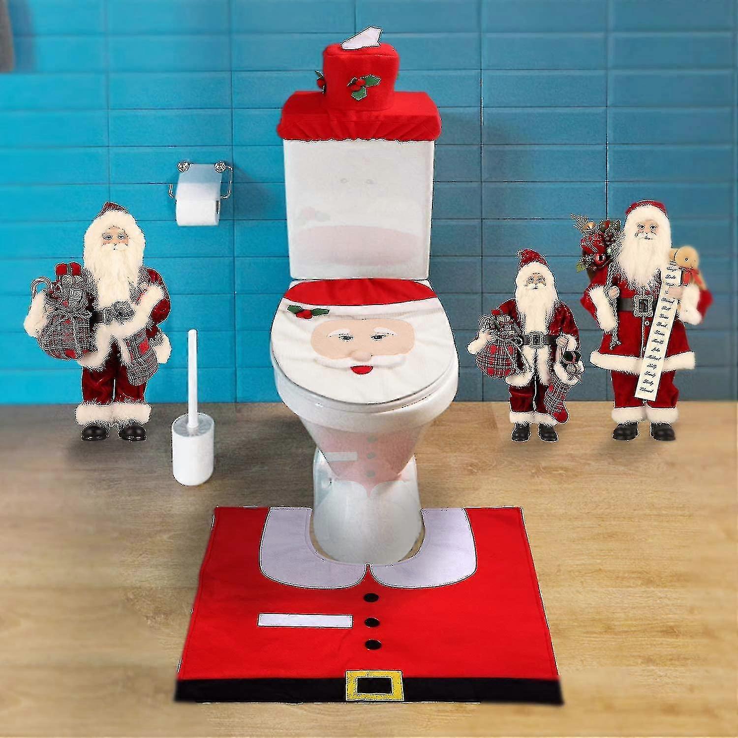 Mbuynow 3pcs Santa Claus Pattern Toilet Christmas Decoration With Toilet Cover/cover/mat For Christmas