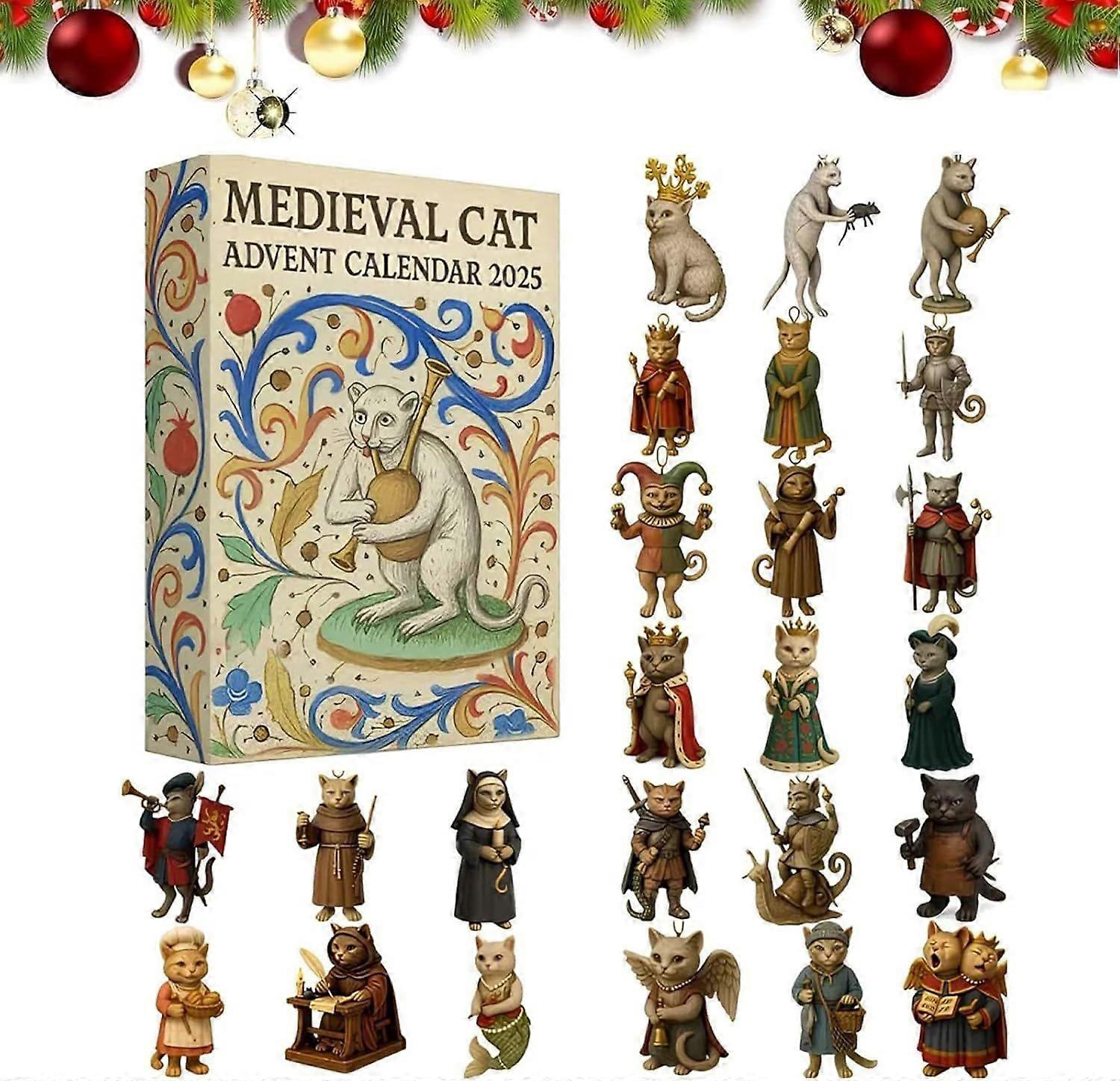 Medieval Cat Advent Calendar 2025, 24 Day Christmas Countdown Calendar, 2D Acrylic Cat Christmas Tree Decoration Advent Calendars with 24 Different Ki