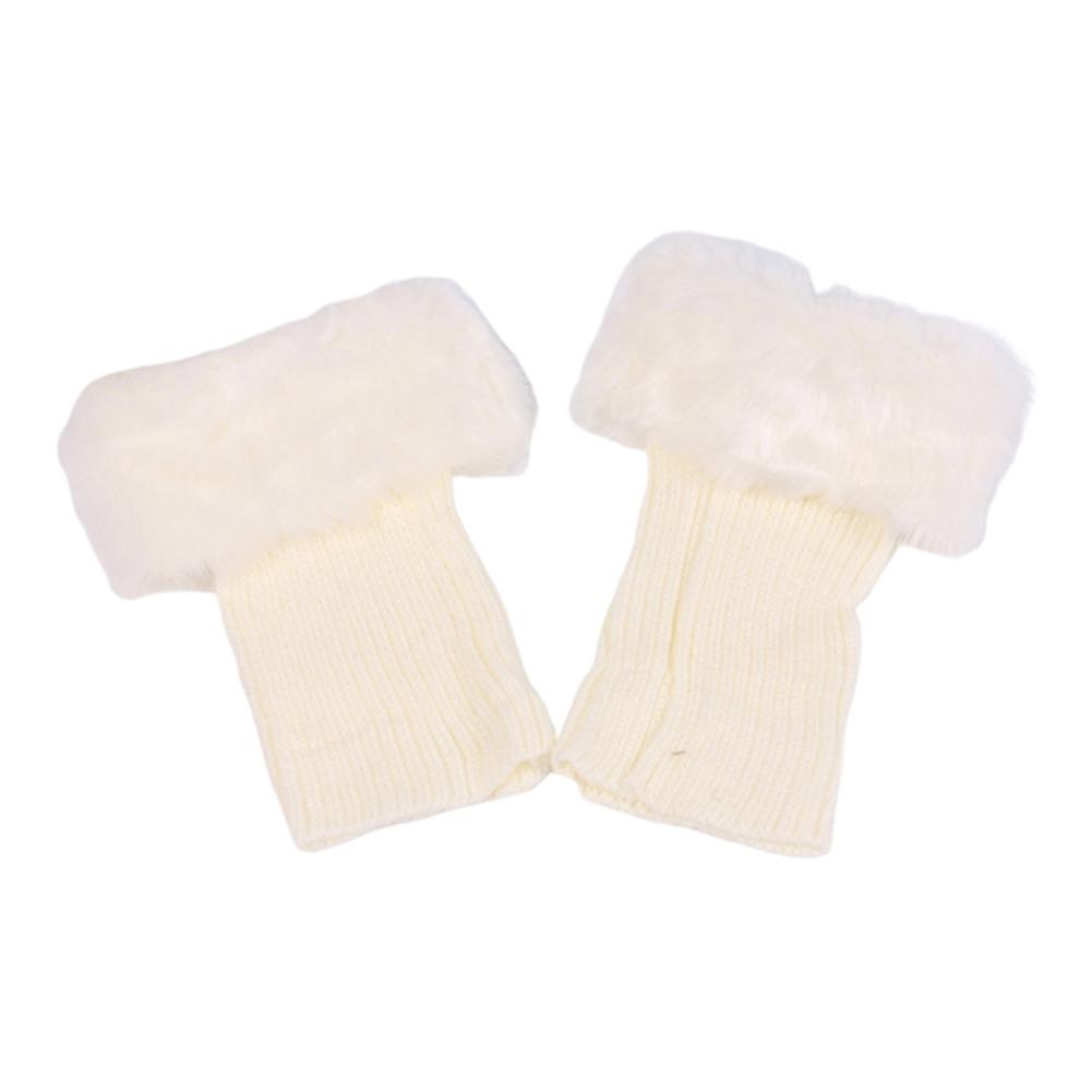Merryso Women Solid Color Faux Fur Crochet Knit Leg Warmers Cuffs Toppers Boot Socks
