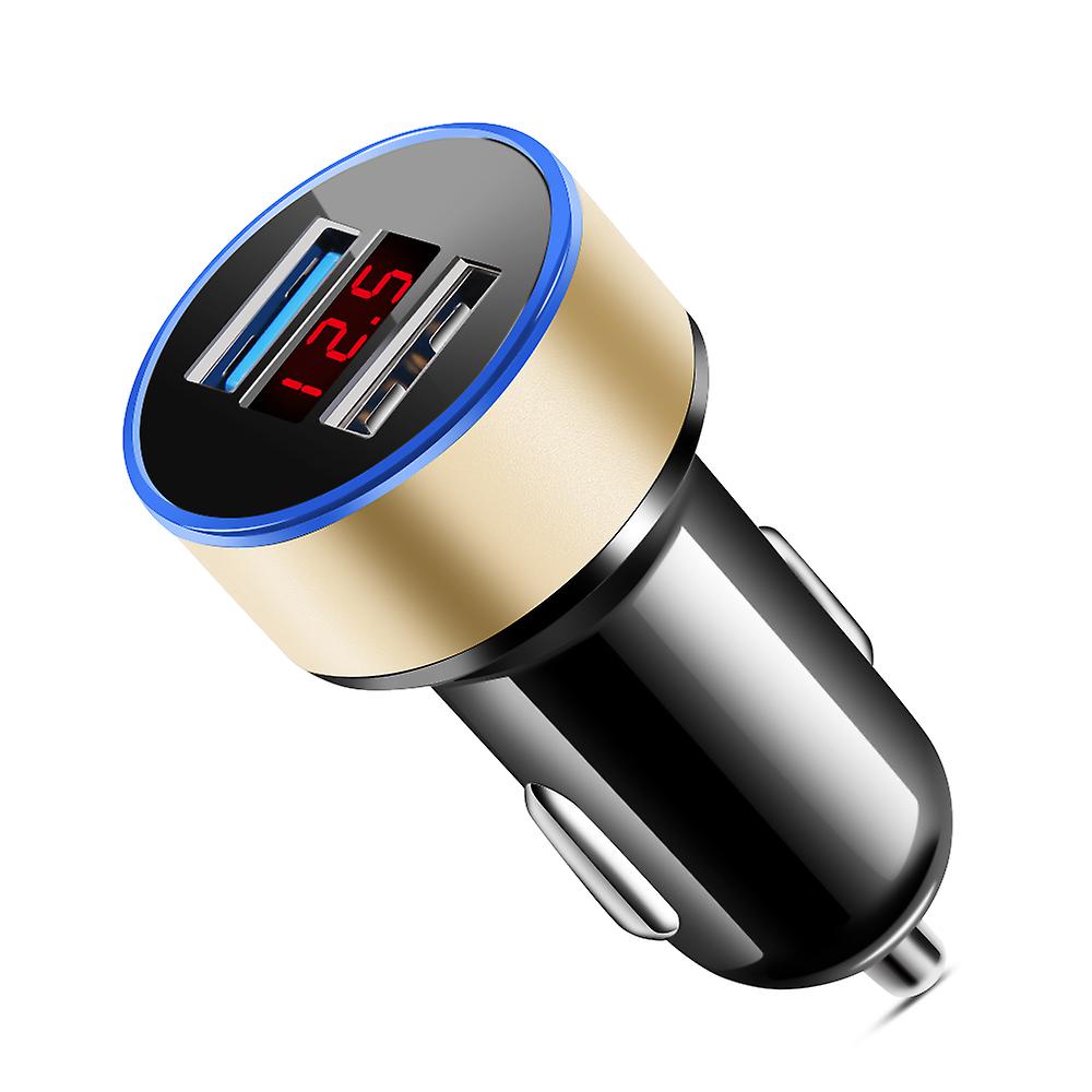 Features:100% brand new and high qualityLED indicator light; blue led light display screenDual USB ports, charge twe devices simultaneouslyNote:Fixed display 12.5, Can't Monitor car battery voltage real-timely Incredible quality, aluminum alloy rim, pure copper USB contact point, more durableSmart surge protection via fuse mode, dual smart chips with high speed chargingSmart temperature reduction system dissipates the heat of internal components of car charger, and keep it in a suitable temperature status for normal work and extending life-span.Wide Compatibility, suitable for most phones/tablet pc/navigator/PDA/PSP/MP3/MP4/GPS, and other digital devicesSpecification:Material: Aluminum alloy+PCWork Temperature: 0~40Size: 33*59mmPackage Includes:1 x Car charger