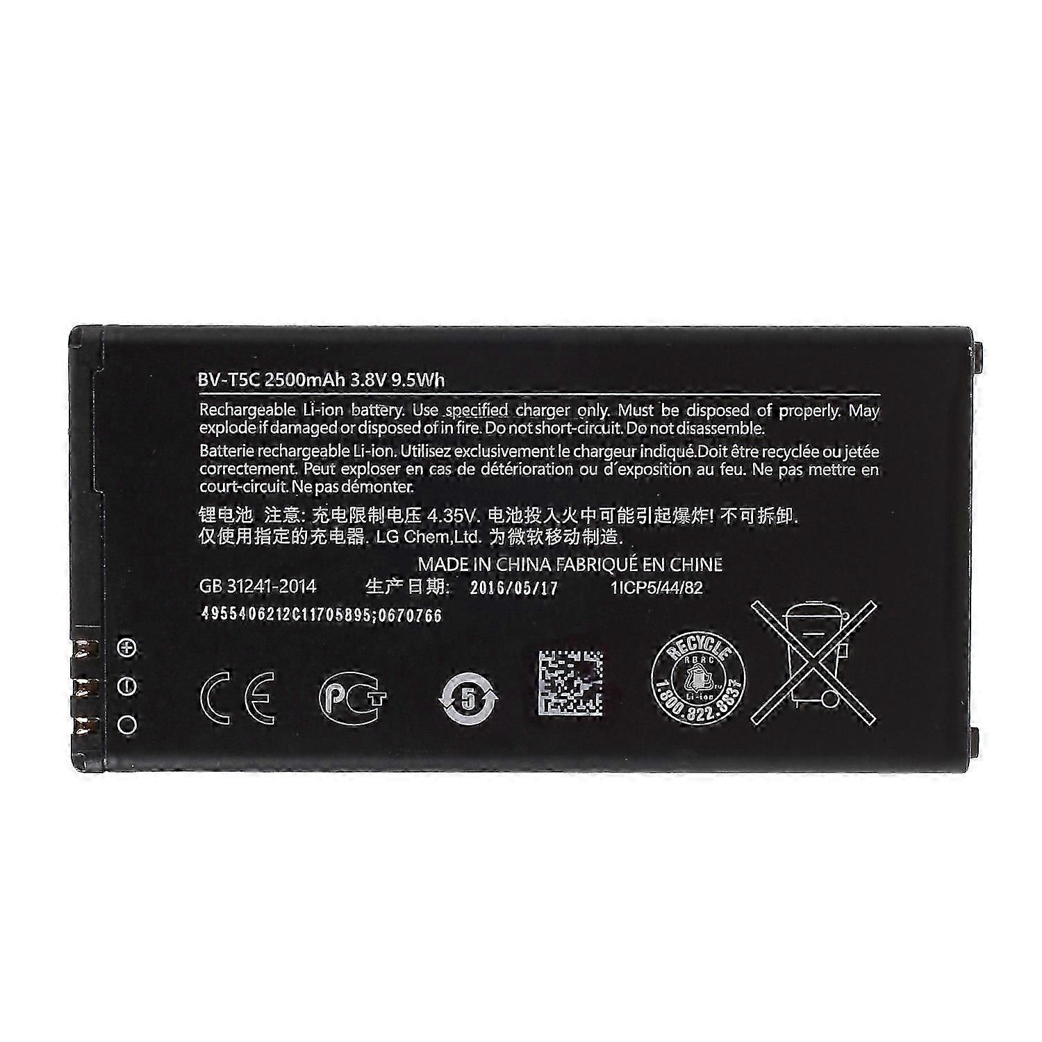 High-quality rechargeable Li-ion Polymer Battery replacementPerfect for replacing your aged, damaged and non-working batteryHighly recommend professional installation, novices need the guidance of professionalEach item will be checked and in good condition before shippingSpecifications:Battery model: BV-T5CBattery type: Li-on Polymer BatteryCapacity: 2500mAhVoltage: 3.85VNote: We will not be held responsible for any damages to your cellphone/mobile phone that you may cause during the changing of replacement parts.Compatible with:Microsoft Lumia 640 Dual SIMPackage included:1 x Rechargeable Li-Polymer Battery (without Logo)
