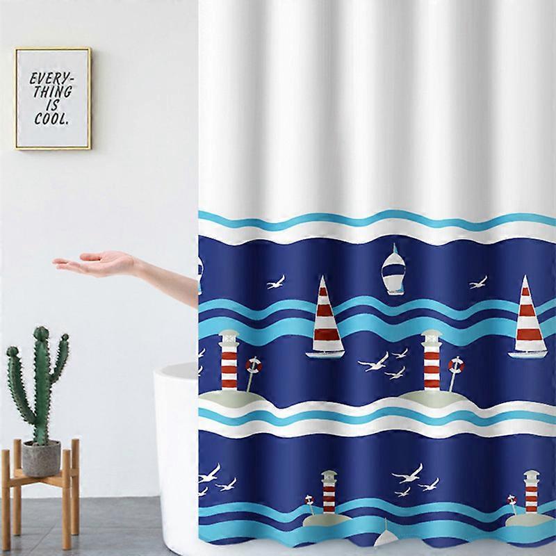MIMIGO Shower Curtain, Blue and White Nautical Fabric Shower Curtain, Weighted Hem & Washable Sailboat Bathroom Curtains with Hooks (Blue)