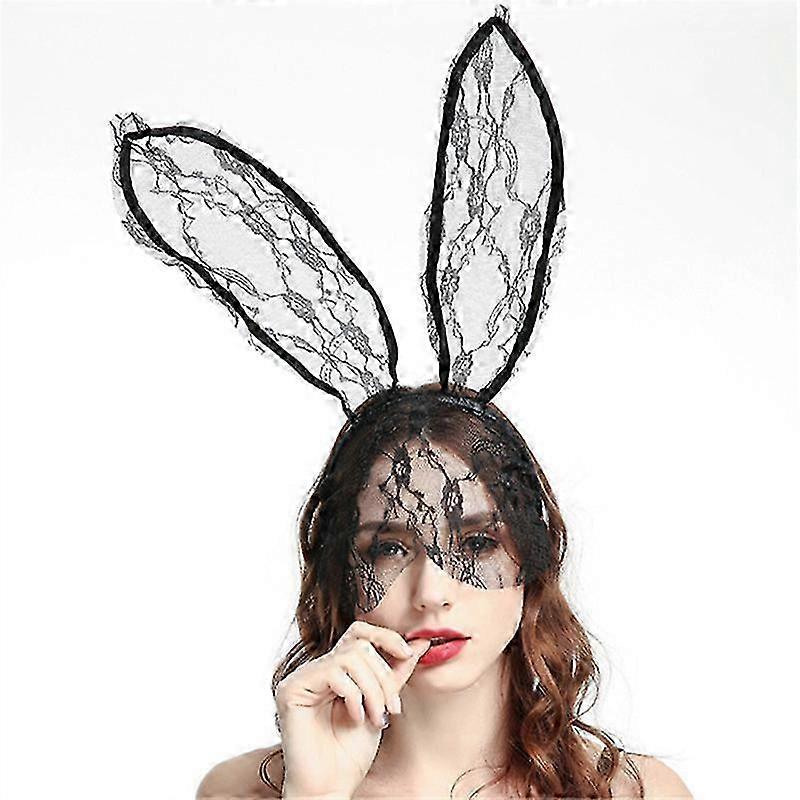 MIMIGO Black Bunny Ears Veil Headbands Lace Mask Veils Hair Band Rabbit Ear Hair Hoop Party Decoration Headdress Prom Cosplay Headwear Costume Hair Ac