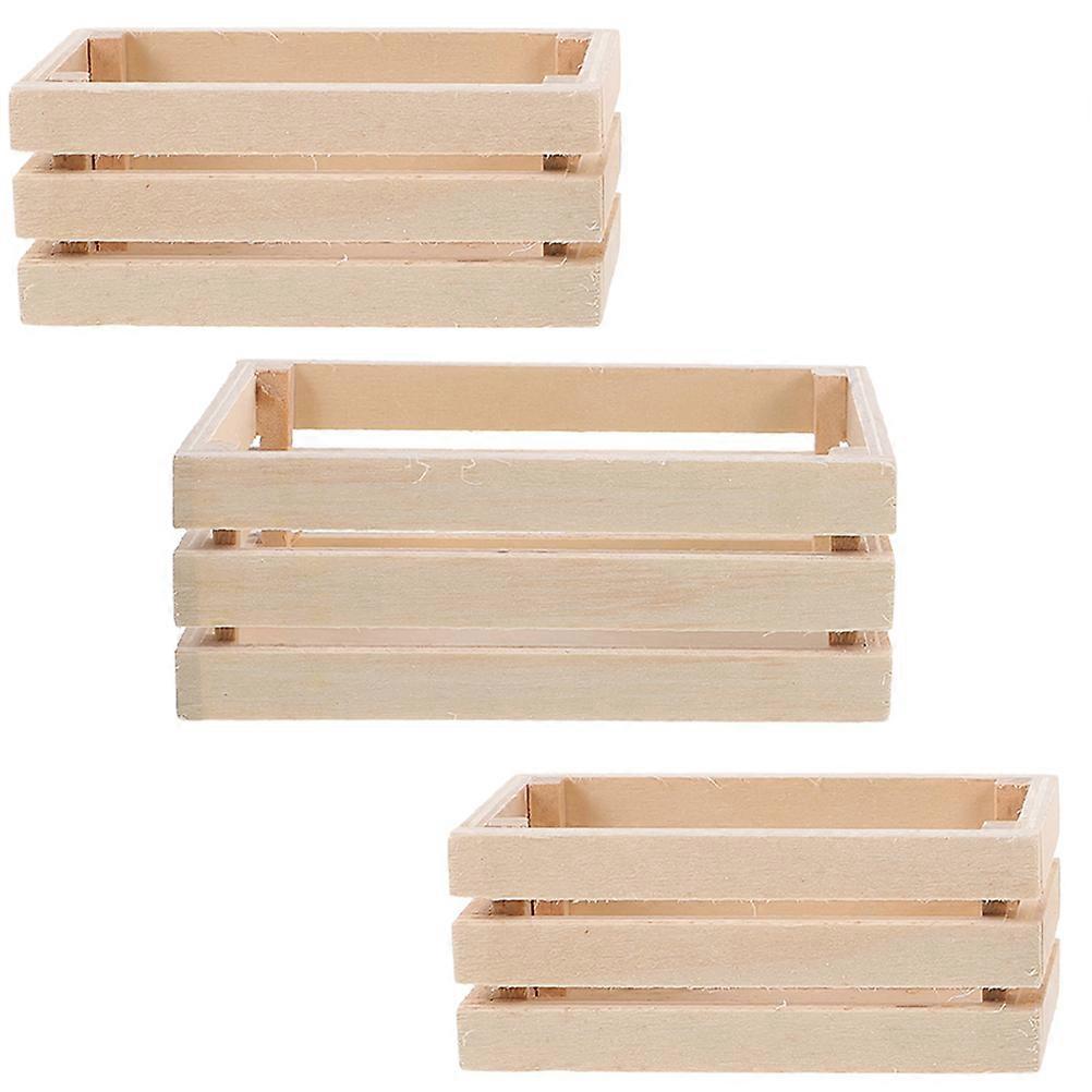 Mini Crates 3Pcs Beige Realistic Look Space-Saving Wood Tiny Basket for Decor
