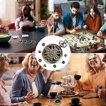 Mini DND Dice Set with Dice Set, 7 Polyhedral Metal Dice, Steampunk Style Watch, Bronze