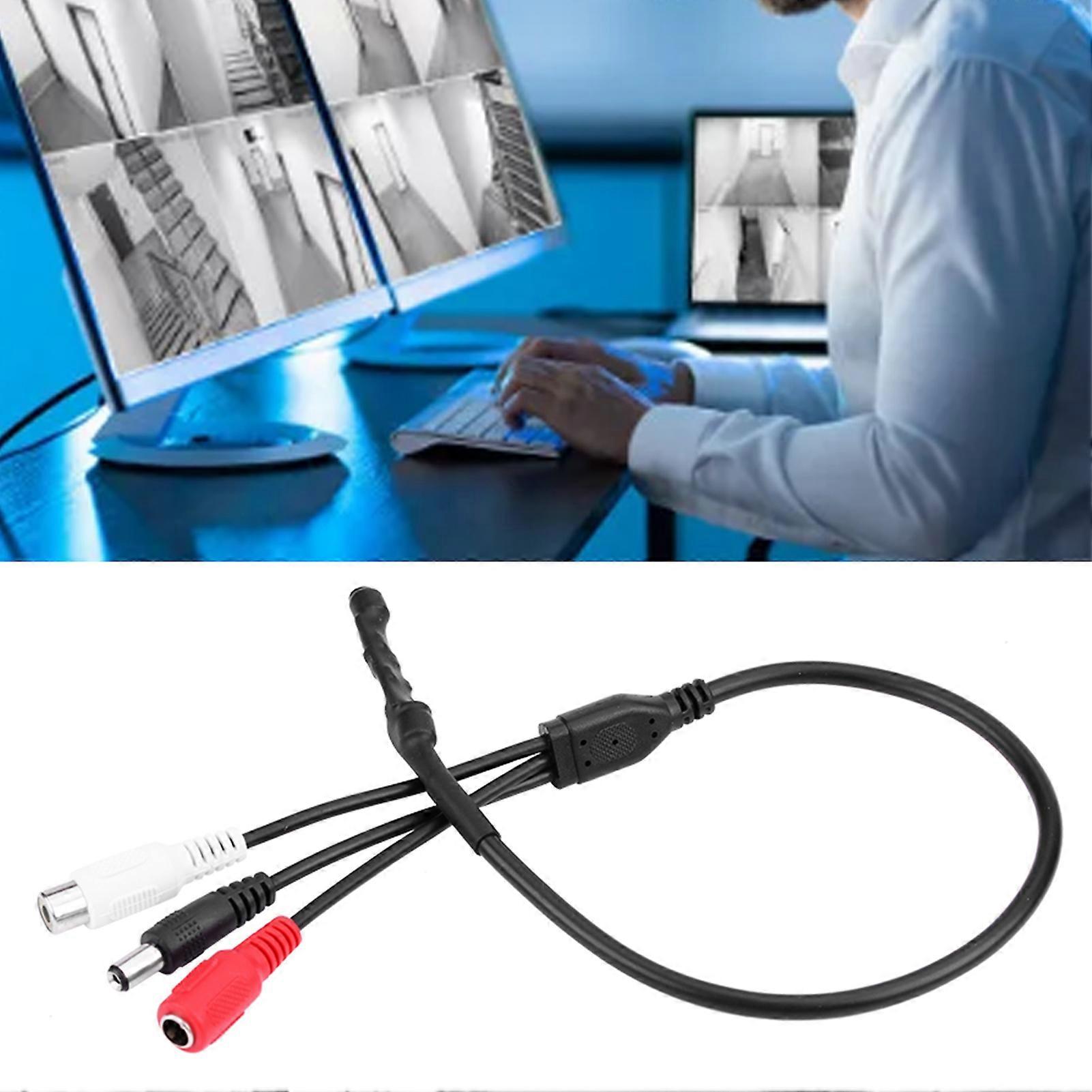 Mini Microphone High Sensitive Pickup Audio Mic for CCTV Security Camera DVR Sound Features: This security microphone for CCTV security camera is compatible with devices that accept AV input, like DVR, VCR, TV, etc. High Sensitivity Audio Sound Pick Up.  Sensitivity adjustable. Low noise, high-fidelity.  Wide monitoring range of about 10-50 square meter. Specifications: Color: Black Material: Plastic Current: 15mA Output Impedance: 600ohm Monitoring Range: 10-50 Square Meter Connector: Red (DC12V Input), Black (DC12V Output), White (RCA) Cable Length: About 42cm Package Weight: About 29g Package List: 1 * Audio Pickup Device (Other items in the pictures are not included.)