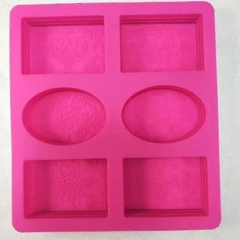 Miniowl-6hole Flower Emboss Pattern Rectangle Oval Silicone Soap Mold