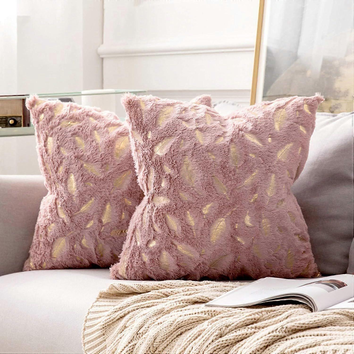 MIULEE set of 2 cushion covers, cuddly cushions, golden feather decorative