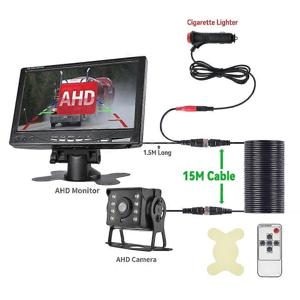 MJDOUD Car AHD Rear View Camera with Monitor for Truck Parking Trailer 24V Reversing Camera for 7 Inch Screen Easy Installation