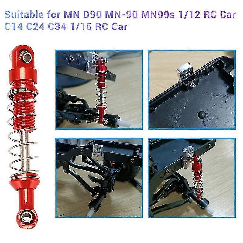 Made of High Quality Meterial, Stronger And More Durable, Improve The Appearance Easy to use,Easy to replace Suitable for MN D90 MN-90 MN99s 1/12 RC Car C14 C24 C34 1/16 RC Car Colour: Red Material: metal Package Contents: 4 x 4 x Extension Seat 1 x Mounting Accessories Set Only the above package content, other products are not included. Note: Light and different displays may cause the color of the item in the picture a little different from the real thing. The measurement allowed error is +/- 1-3cm.