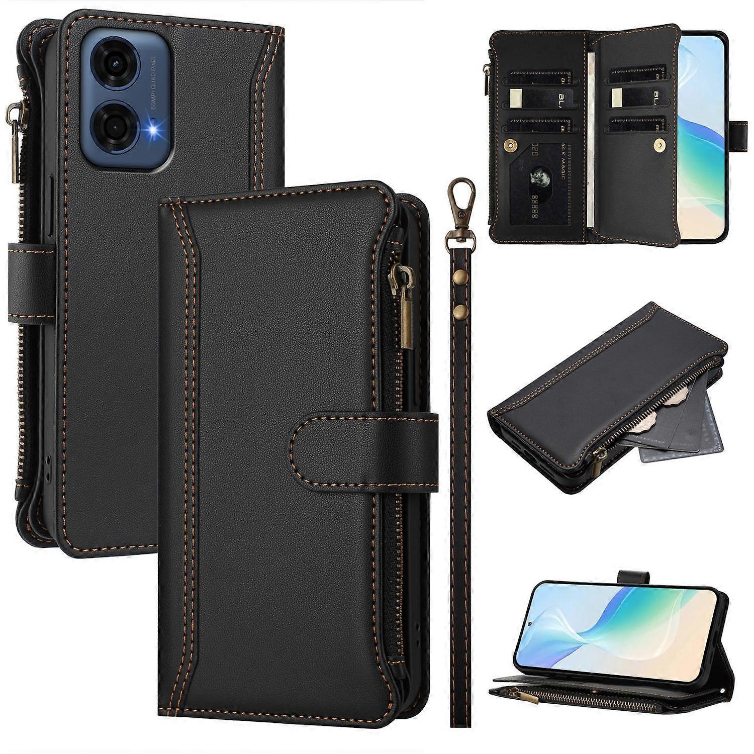 For Motorola Moto G24 Power Case 9 Card Slots Zipper Wallet Stand Phone Cover with Wrist Strap