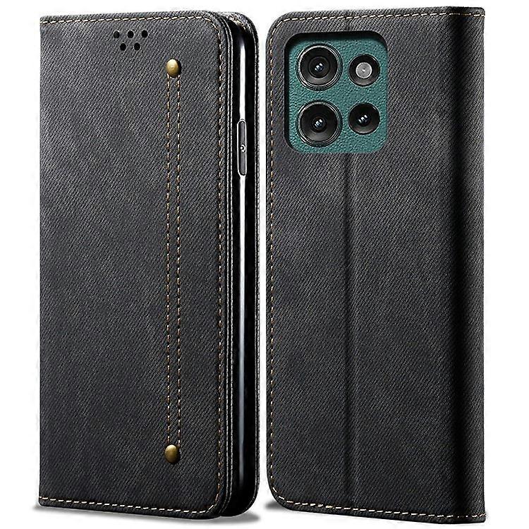 Compatible For Motorola Moto G75 5G Case Jeans Cloth Texture Anti-Scratch Leather Stand Phone Cover